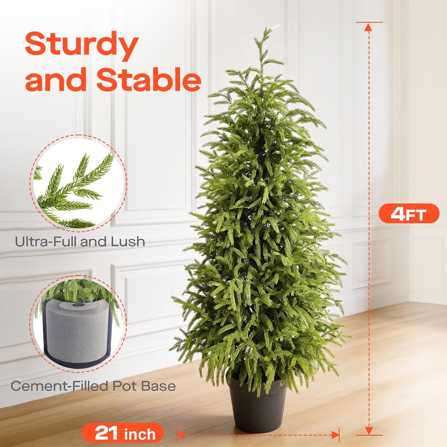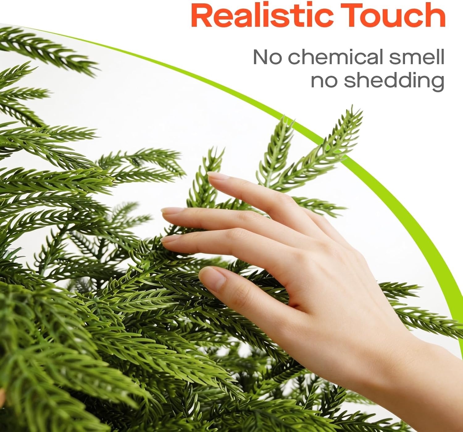 Enhance your home, office, or outdoor space with the premium artificial Norfolk pine tree, designed for lifelike beauty with effortless maintenance. Crafted from eco-friendly PE material, this tree is 100% odor-free, non-toxic, and safe for all environments. Its realistic foliage and weather-resistant construction ensure it withstands sun, rain, and wind without fading or deformation, making it a durable and reliable decorative solution.