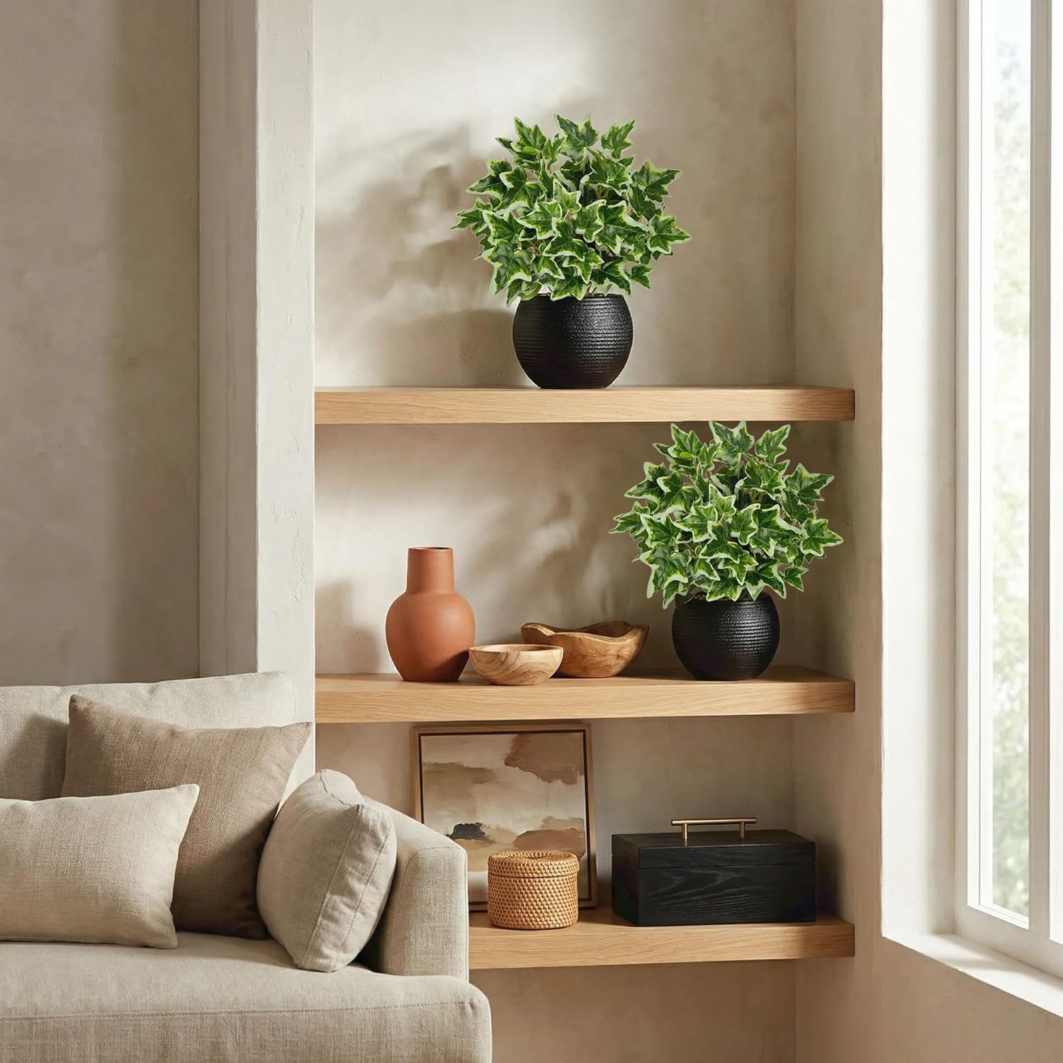 Crafted from durable plastic and silk, the greenery is fade-resistant and long-lasting. Its versatile, compact design complements a variety of styles, including modern, minimalist, industrial, and Scandinavian interiors. Use it alone or paired with a DIY ceramic pot to add a fresh pop of green to your office, living room, bedroom, or workspace.