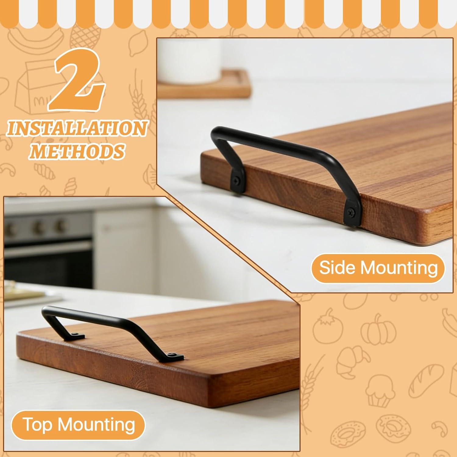 • Easy Installation – The metal handles for cutting board includes mounting screws for straightforward setup. Complete in three steps: position, drill (if needed), and secure—ideal for beginners