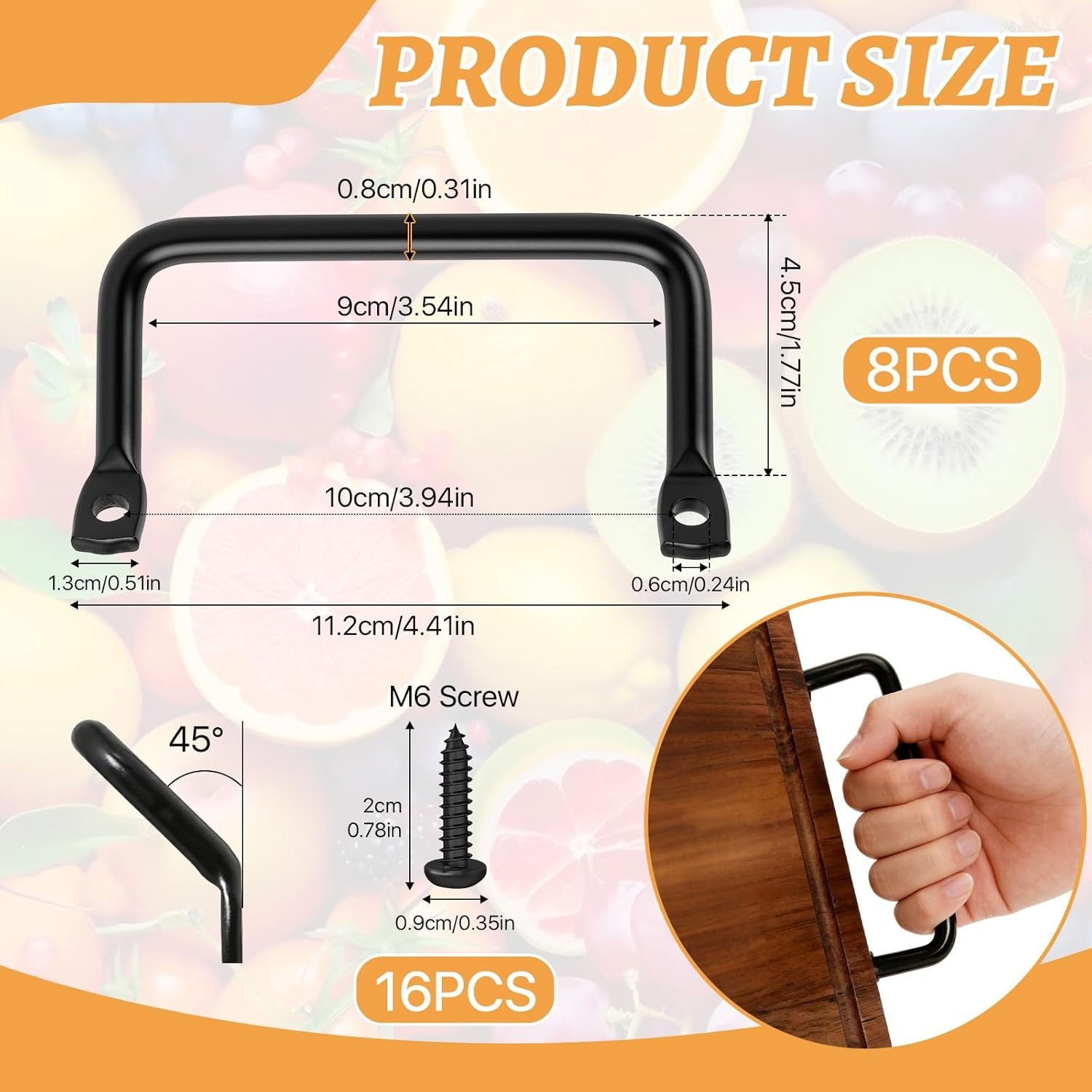 This pull-out handle set provides a complete solution for your home makeover! Includes 8 premium carbon steel handles and 16 matching screws—ready to use right out of the box, eliminating extra purchases. Constructed from sturdy carbon steel with a wear-resistant black coating, it offers exceptional durability. The precise 100mm hole spacing ensures ergonomic comfort, while the angled design saves space and provides a comfortable grip. Installation is simple and quick, completed in just three steps. Widely applicable for kitchen cutting boards, serving trays, drawer cabinet doors, wooden storage boxes, wardrobes, dressing tables, and more, this set meets all your home upgrade needs, making it the perfect choice for modern home renovations