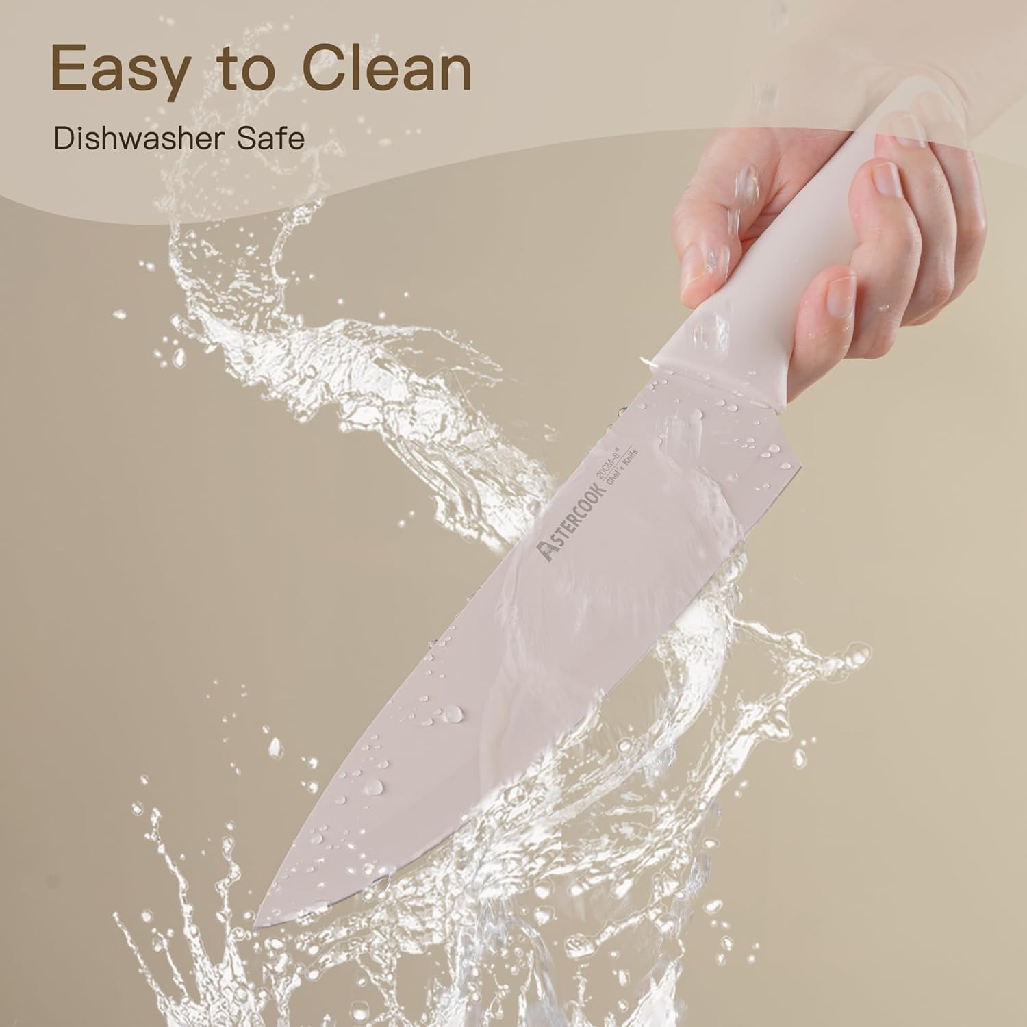 Each knife features a high-quality anti-rust coating that protects against oxidation while remaining dishwasher safe. The non-stick coating ensures your blades stay clean and easy to use, making meal prep quicker and more hygienic.