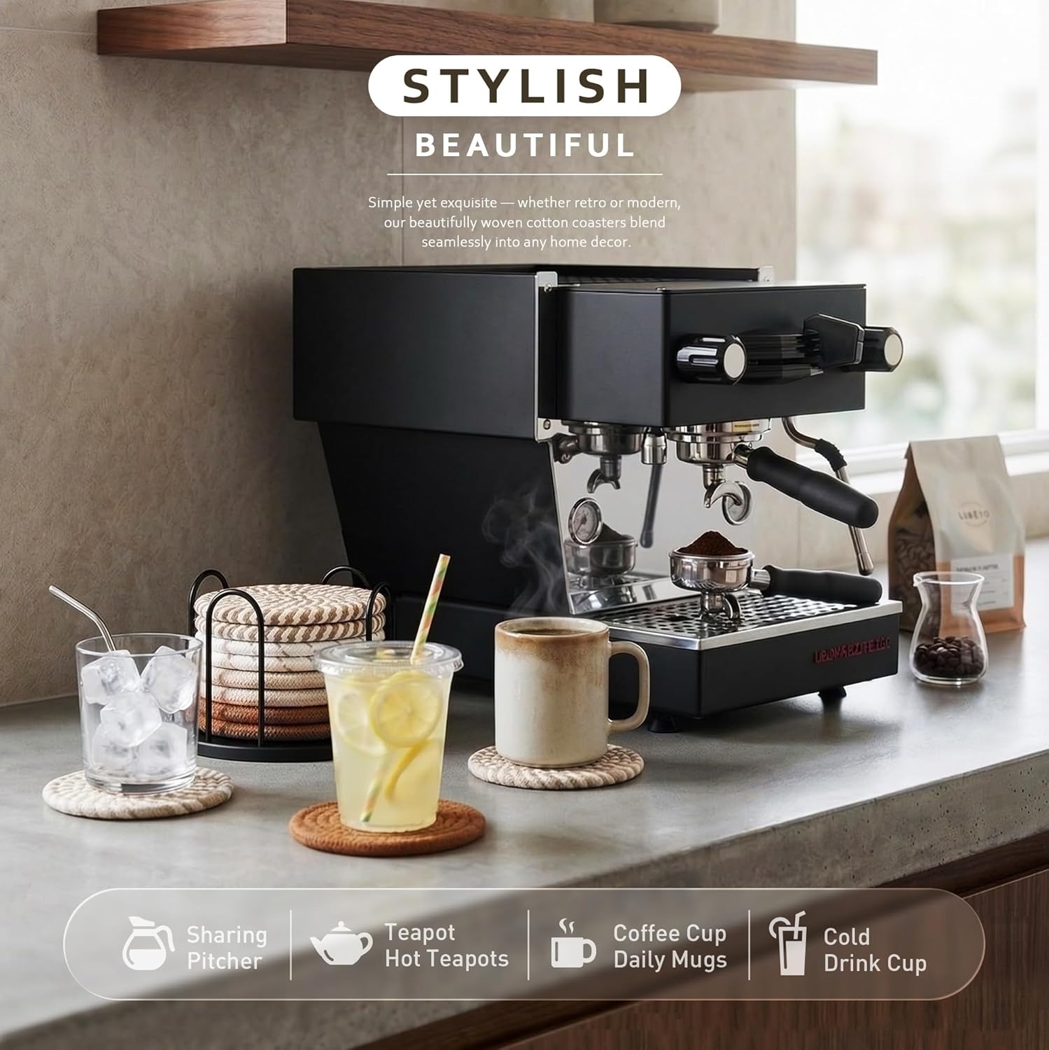 Crafted from high-quality cotton and linen, the coasters quickly absorb moisture and allow it to evaporate, ensuring your surfaces remain dry and protected. The soft material prevents scratches on furniture while also providing light insulation against hot or cold beverages.