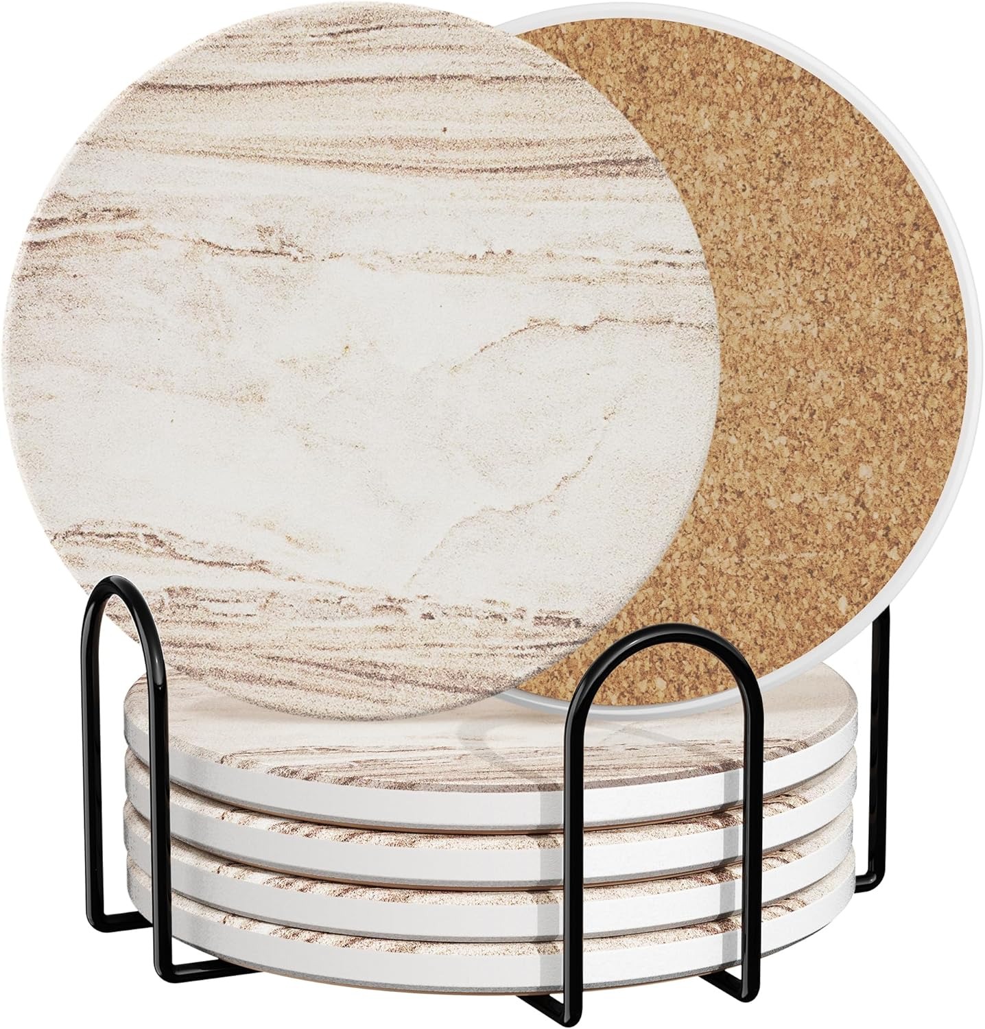 Cleaning is effortless: rinse under running water and hang to dry. When not in use, keep the set organized in the included metal holder to maintain a neat, clutter-free tabletop. These coasters combine practicality, durability, and elegance, making them a must-have for any home or bar.