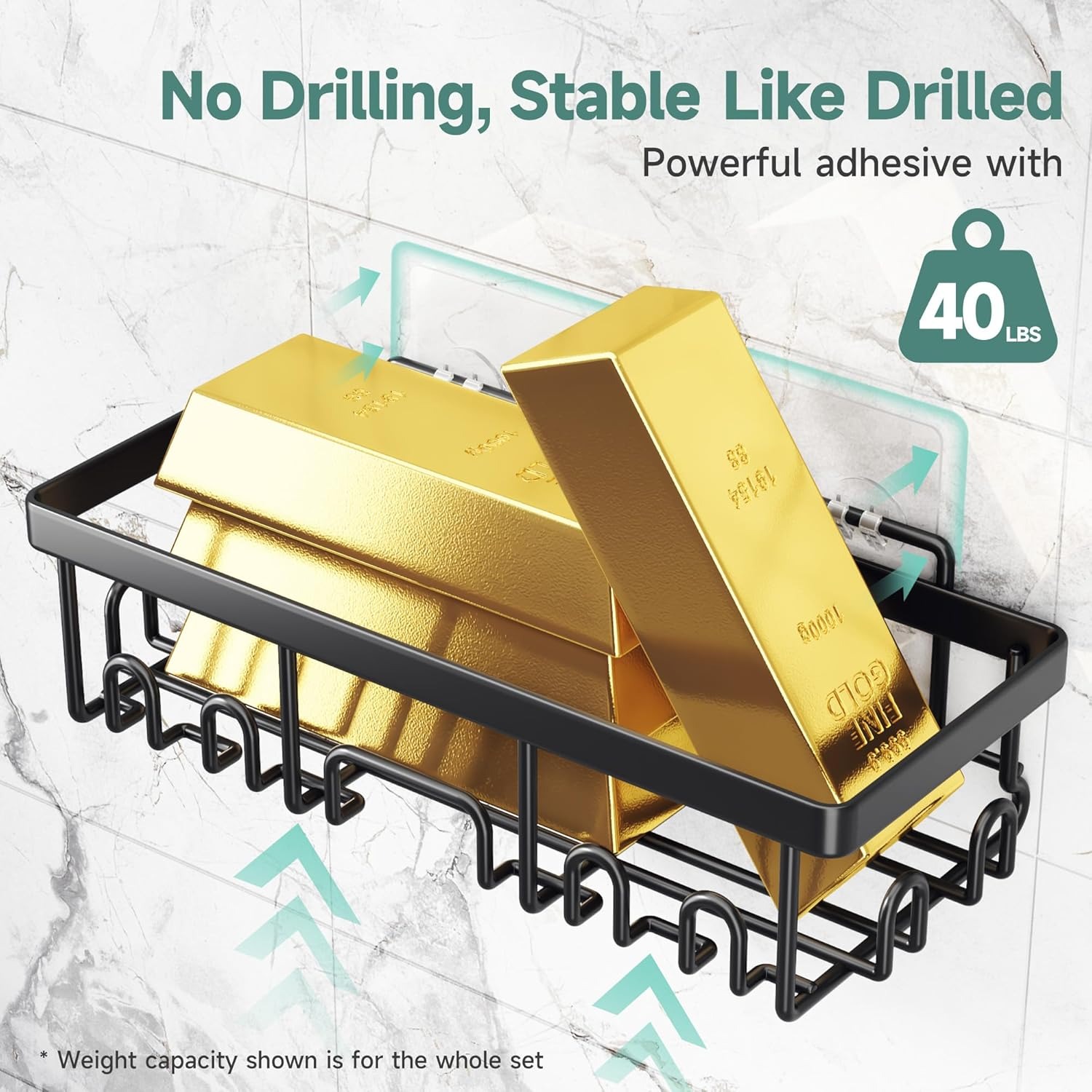 The set is perfect for keeping all your shower essentials—shampoos, soaps, razors, and toiletries—organized in one accessible location. The tool-free installation uses a strong adhesive system, allowing you to securely mount your caddies without drilling or damaging walls. Simply follow the 4-step process for a hassle-free setup.